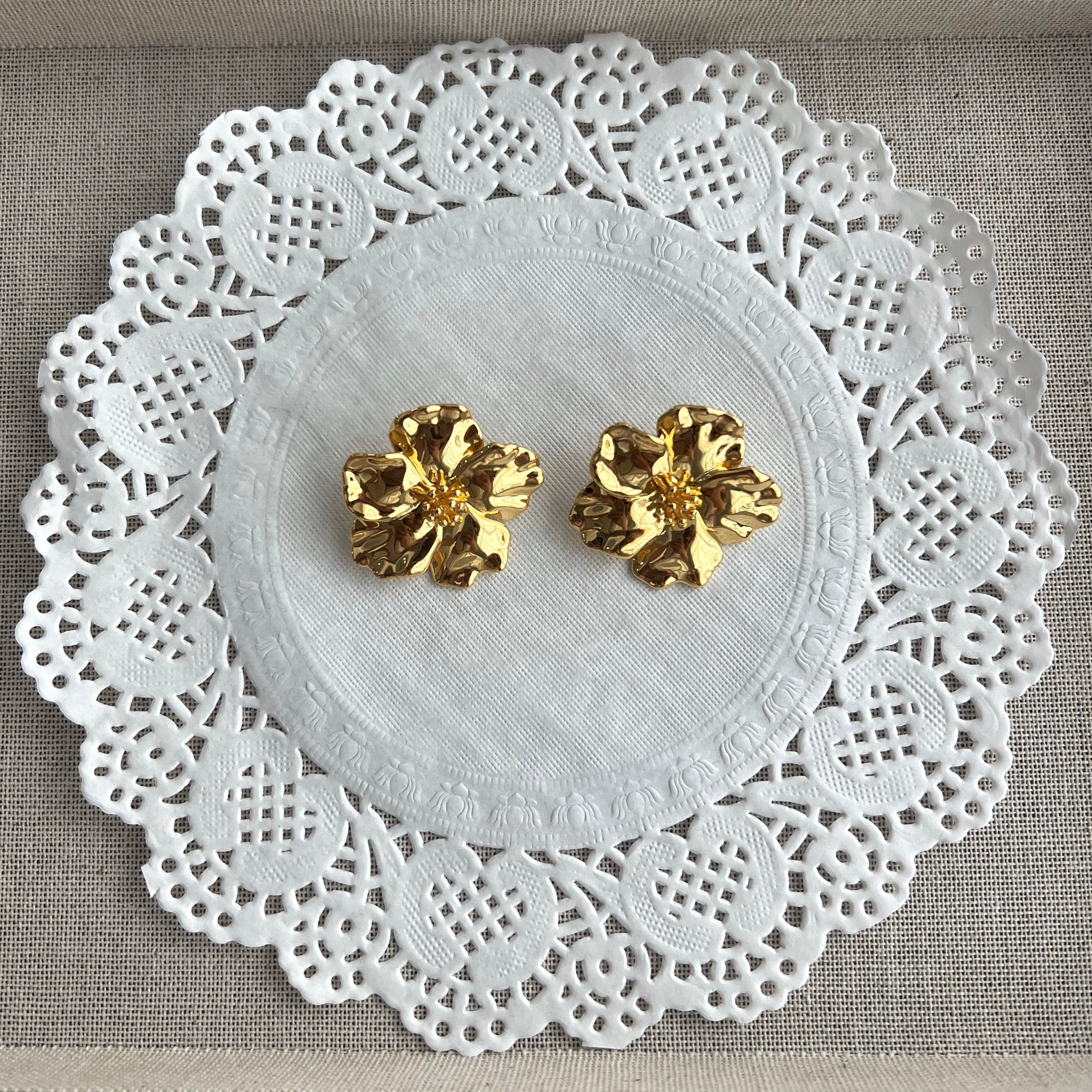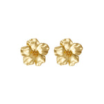 Experience holiday elegance with our gilded hibiscus shaped earrings. These enchanting accessories capture island vibes with delicate gold detailing, perfect for adding a touch of tropical charm to any outfit.