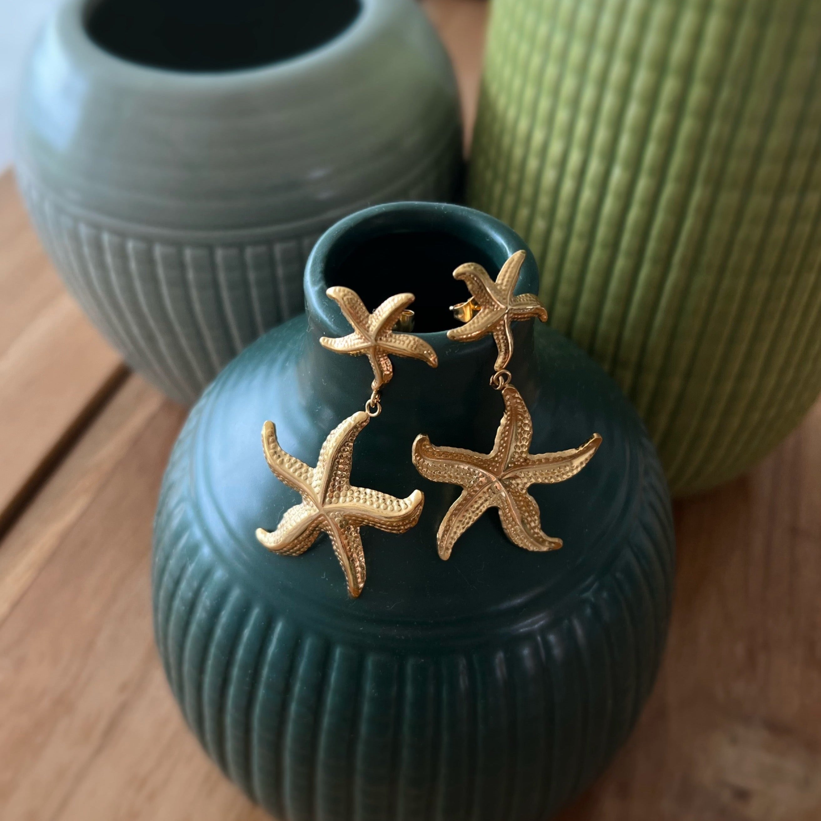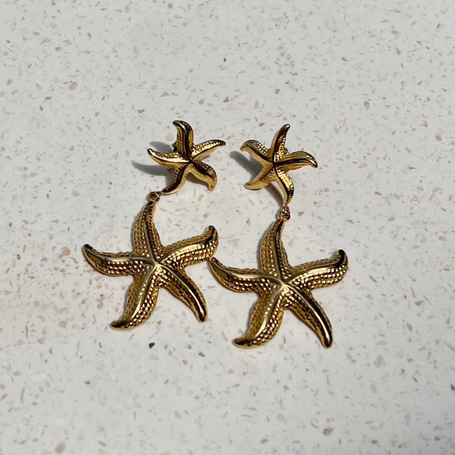 Embrace seaside elegance with these starfish earrings, crafted to reflect the beauty of the ocean.They add a coastal charm to any outfit, ideal for those who carry a piece of the beach with them wherever they go.