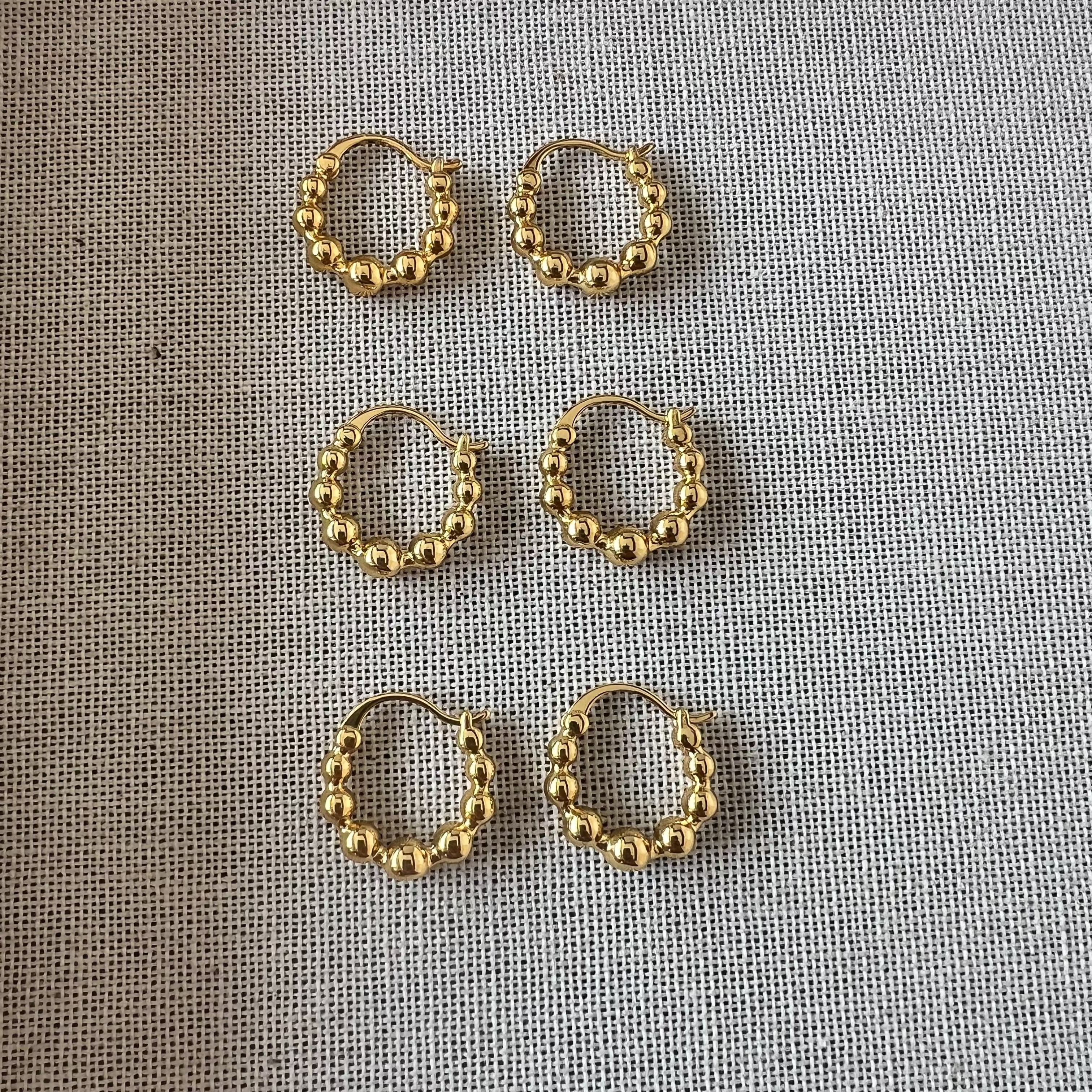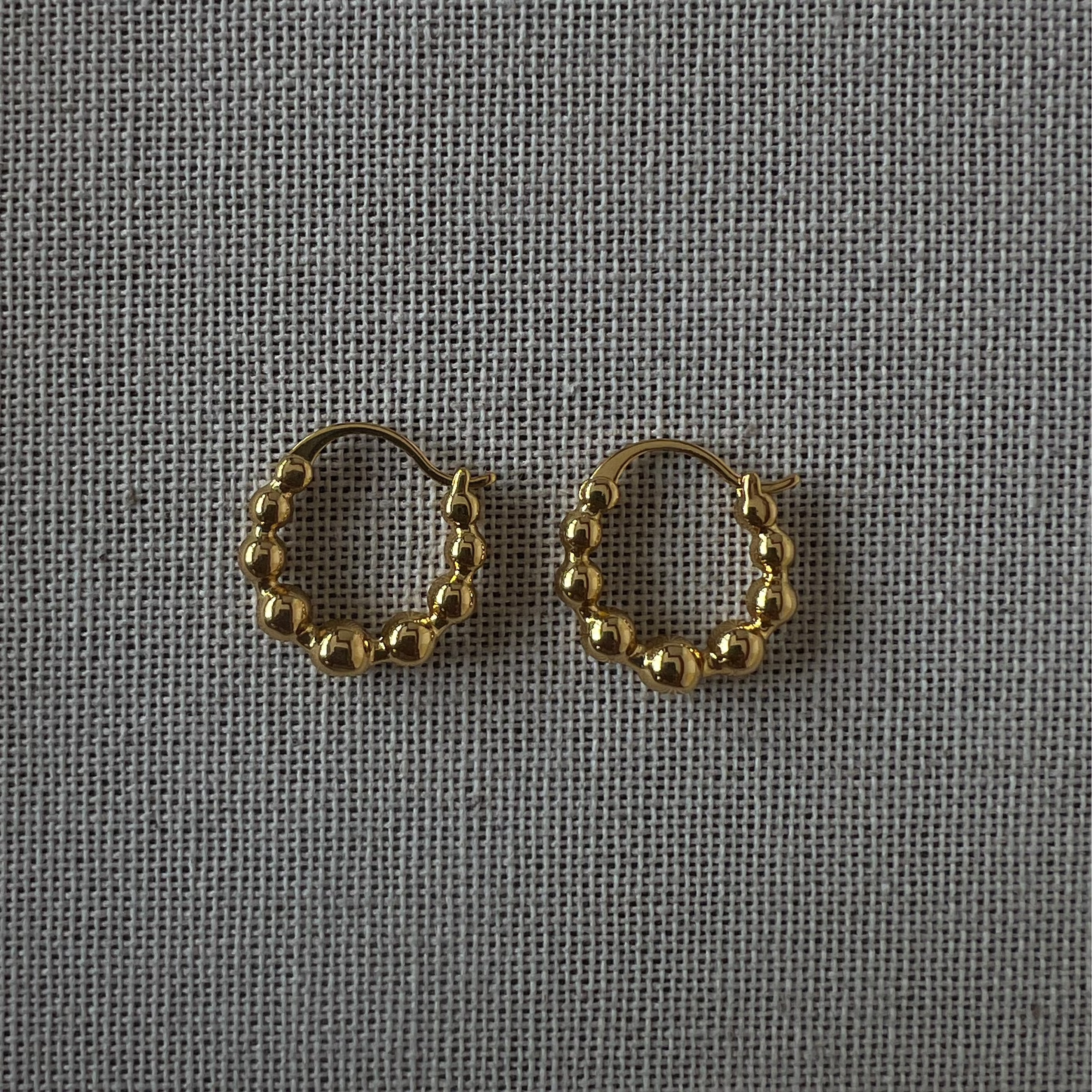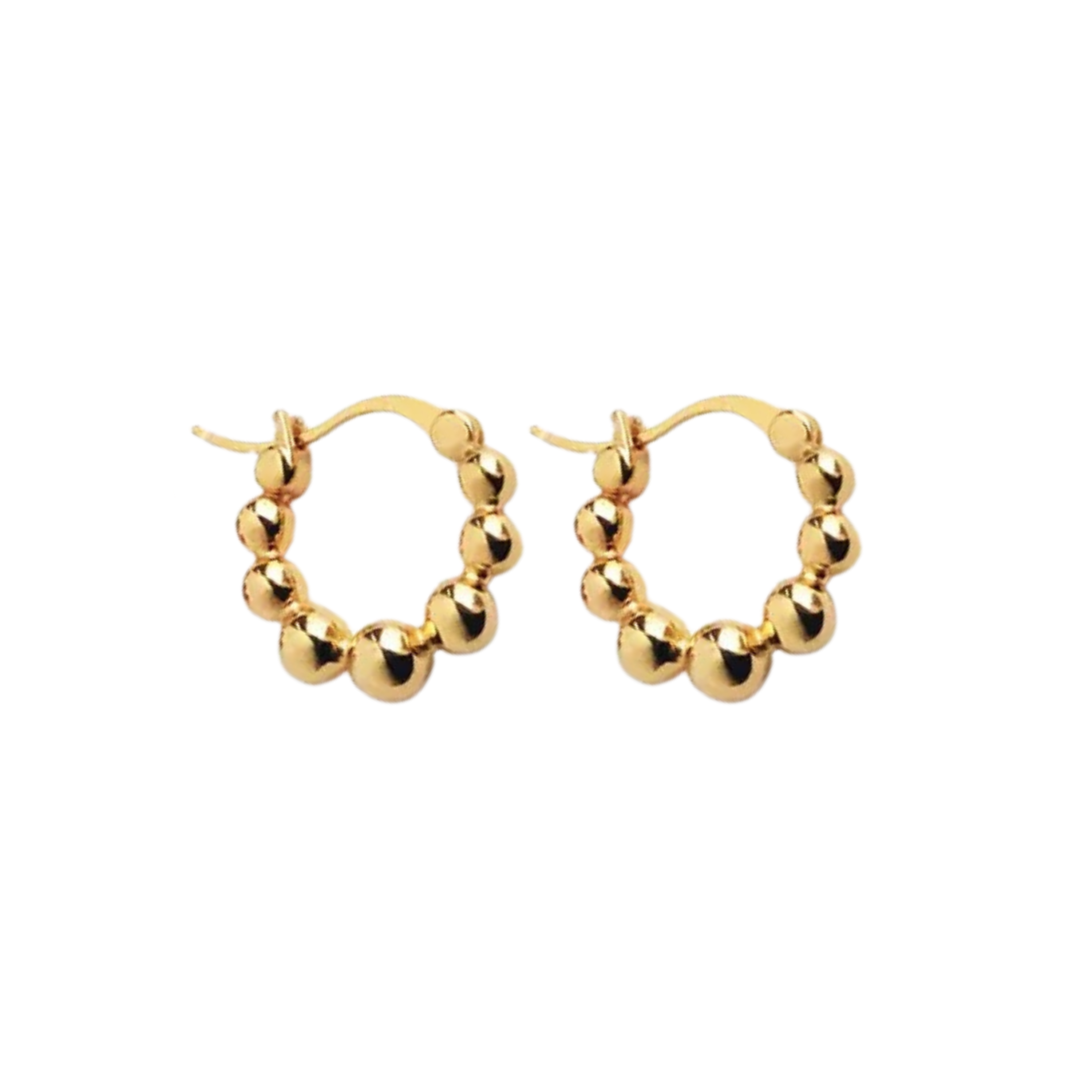 A chic gold huggie crafted with refined round accents for a modern finish.