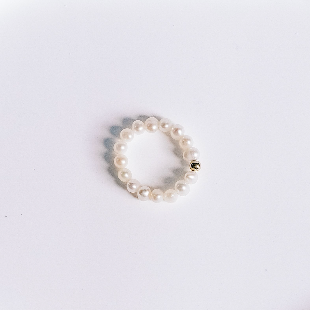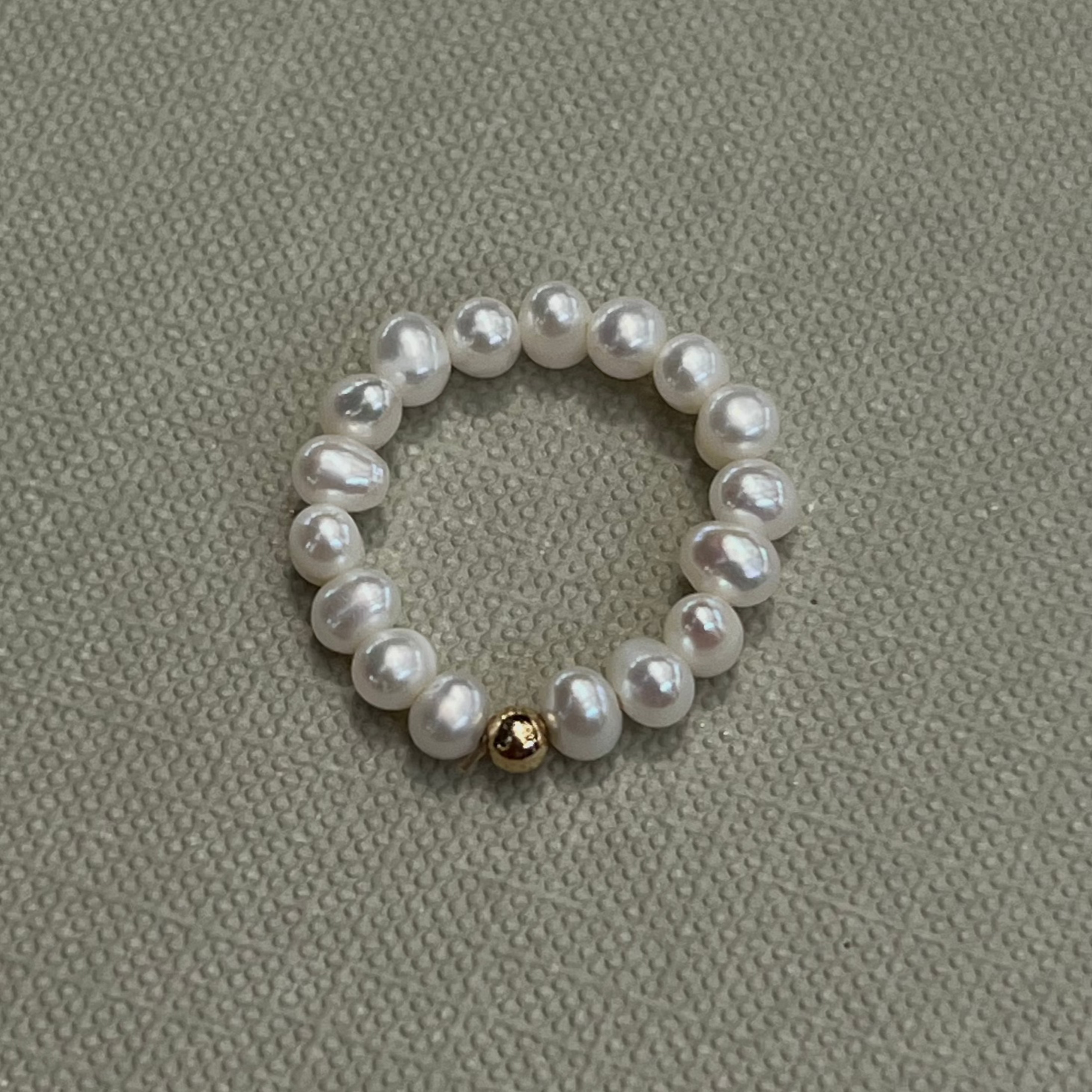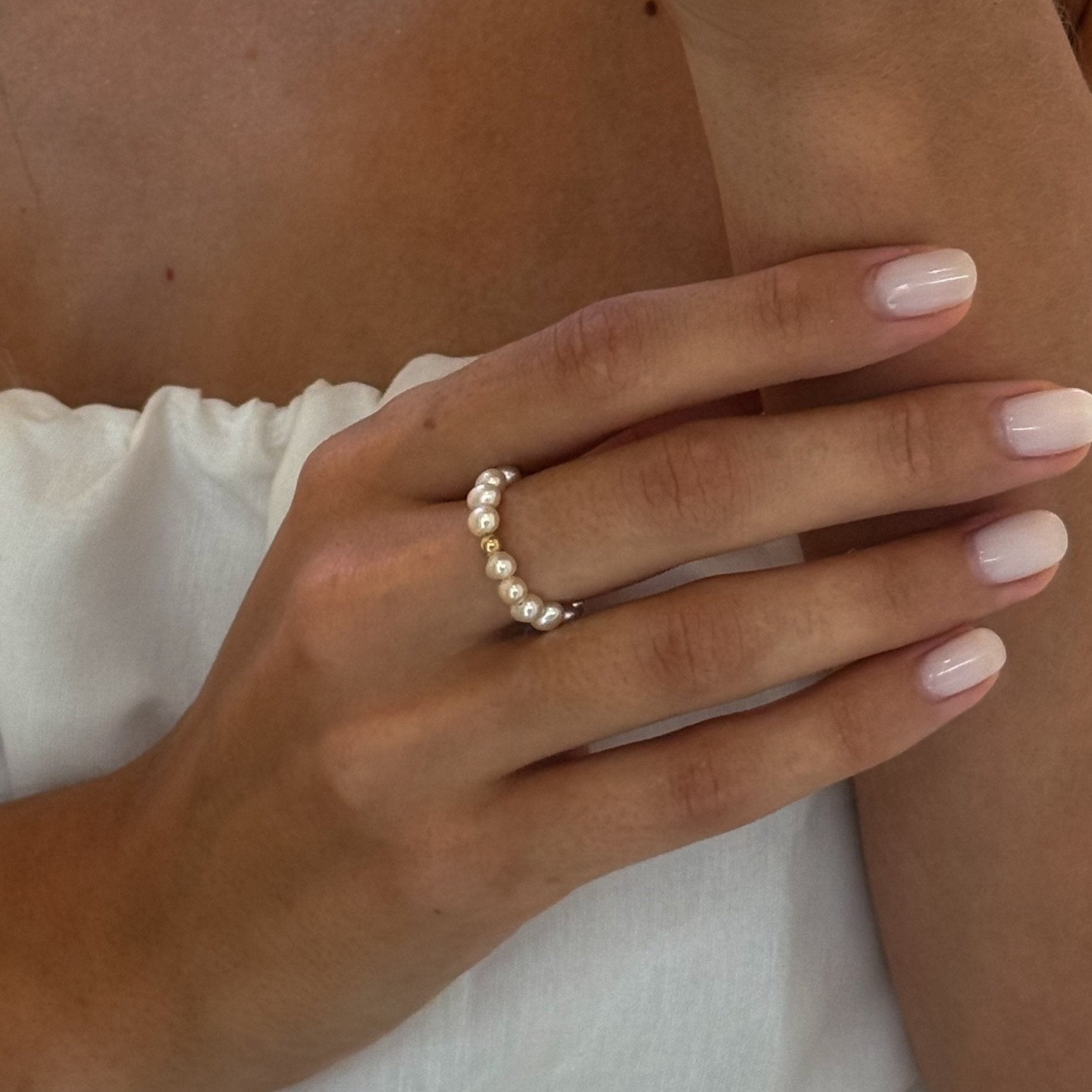 All-pearls ring crafted from delicate, small, and round freshwater pearls, each exuding a brilliant shine.