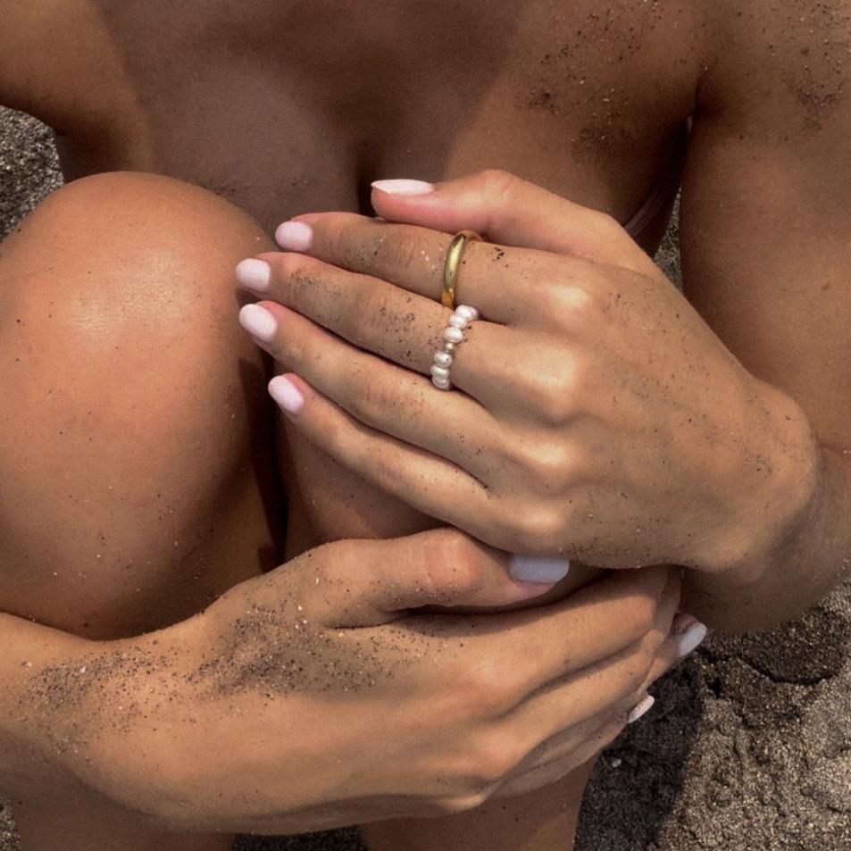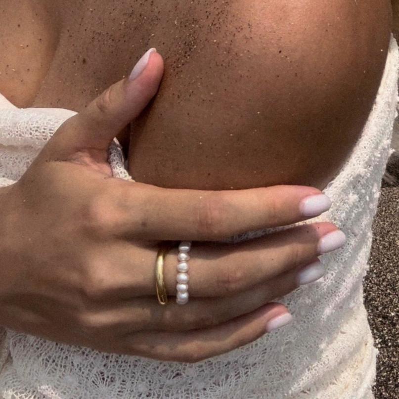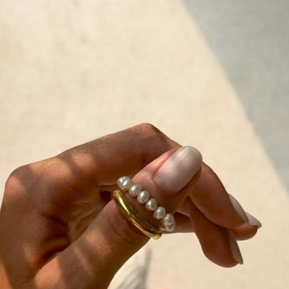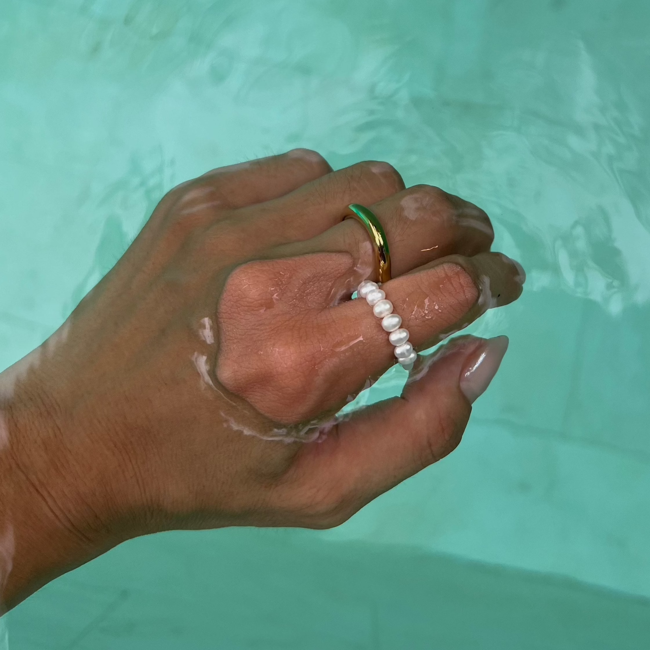 All-pearls ring crafted from delicate, small, and round freshwater pearls, each exuding a brilliant shine.
